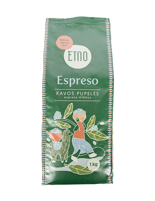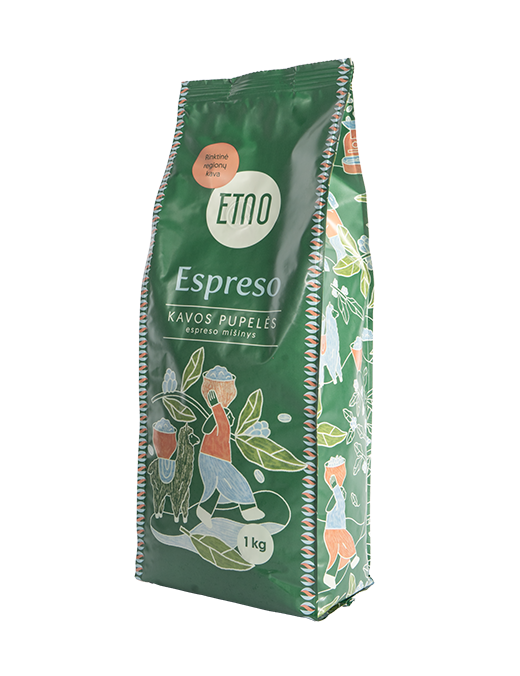 ETNO Espresso kavos pupelės – tai kruopščiai subalansuotas espresso kavos pupelių mišinys, sukurtas kasdieniam kavos ritualui. Mišinyje dera Peru ir Hondūro arabikos bei Ugandos robusta, kurios kartu sukuria švelnų, bet išraiškingą espresso skonį.