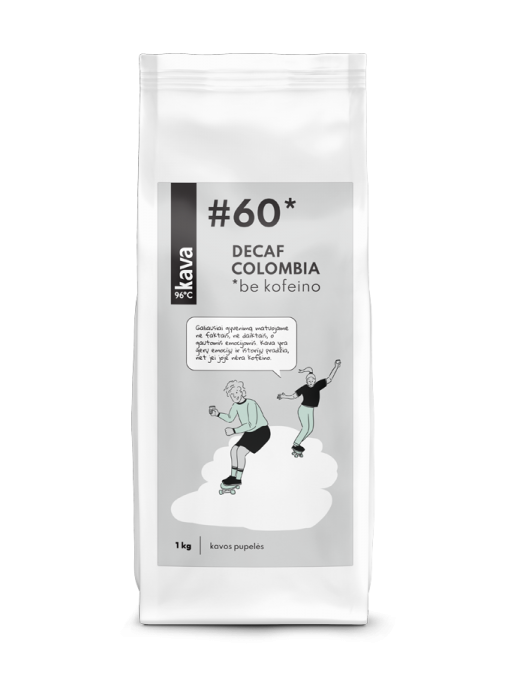 KAVA96 Nr.60 Colombia Decaf – tai aukštos kokybės 100 % arabikos kavos pupelės be kofeino, išsaugojusios natūralų Kolumbijos kavos skonį ir aromatą. Kava apdorota „Swiss Water“ metodu, kuris leidžia pašalinti kofeiną nenaudojant cheminių medžiagų, todėl išlieka autentiškas kavos skonis.