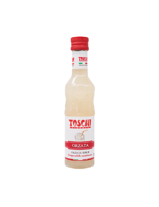 TOSCHI Orzata – švelnaus migdolų skonio sirupas, puikiai tinkantis kavos gėrimams, kokteiliams ir desertams gardinti. Gaivus, saldus ir aromatingas skonis suteikia gėrimams išskirtinį charakterį. 250 ml.